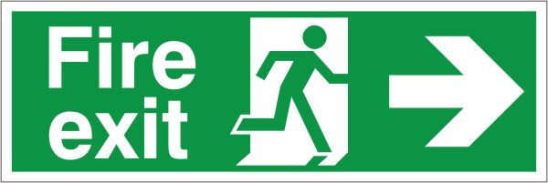 The number and type of fire exit signs you need comes down to how easily occupants would be able to find their way out of the building in the event of fire, especially if they’re not familiar with the layout. You may need a series of these green directional signs leading occupants along the shortest route to escape with arrows indicating which way to go.